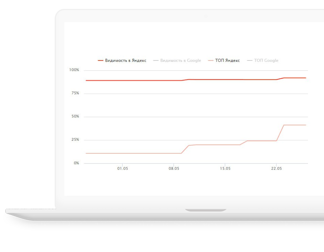 Первостепенной задачей было поднятие сайта в поисковой выдаче Яндекса, увеличение целевого трафика за счет попадания на верхние позиции ключевых запросов. KPI не менее 10% запросов ТОП-10 за 39 дней работы.